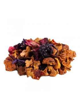 Pomme, betterave rouge, hibiscus, cynorrhodon, datte (datte, farine de riz), baie de sureau, raisin (raisin, huile végétale), arôme naturel, myrtille sauvage, mûre, groseille, mauve.