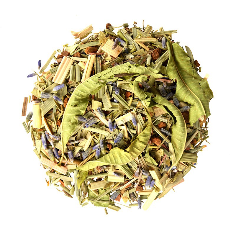 Citronnelle*, bâtons de cannelle*, verveine*, romarin*, thym*, feuilles d'olivier*, arôme naturel, lavande*, fleurs de tilleul*.