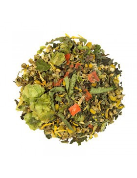 Mélisse* (27%), camomille*, fenouil* (11%), racine de réglisse*, anis*, carvi* (9%), carotte*, menthe poivrée*, fleurs de houblon*, verveine entière*, fleurs de souci*.