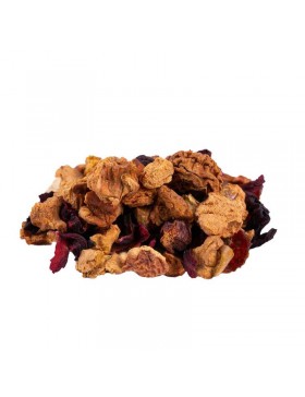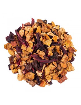 Pomme, hibiscus, raisin (raisin, huile végétale), cynorrhodon, bâtons de cannelle, écorces d'orange, arôme naturel d'orange, clou de girofle, poivre noir, arôme naturel. Mélange premium élaboré avec des ingrédients issus de l'agriculture durable et des arômes naturels.