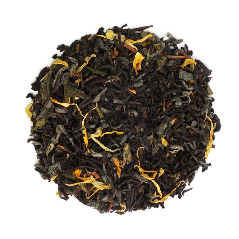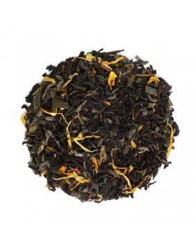 Thé noir Assam et Inde du Sud, thé vert de Chine Chun Mee, thé vert de Chine Sencha, China Oolong, souci, arôme naturel de jasmin et de bergamote, vanille.
