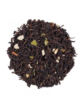 Thé noir Assam, -Inde du Sud, arôme naturel, feuilles de mûre, groseille (2%), cassis (1%).
