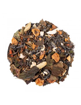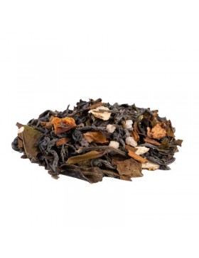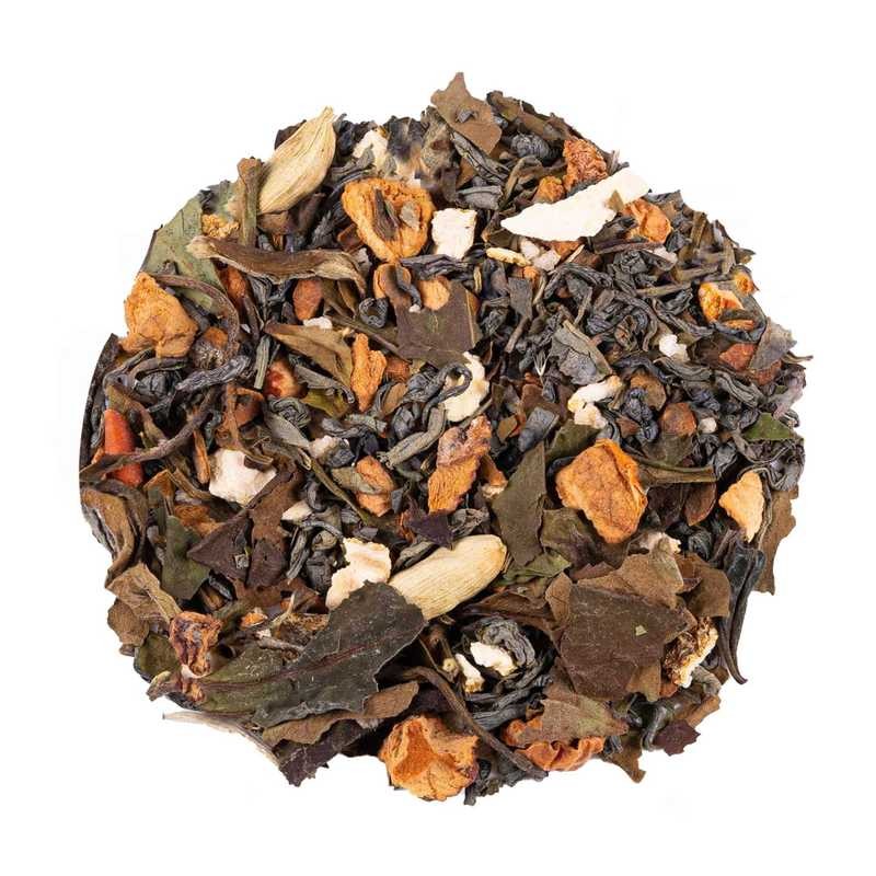 Thé vert China Chun Mee*, thé blanc Pai Mu Tan*, pomme*, Cannelle*, écorces d'orange*, gingembre (gingembre sucre de canne brut)*, noix*, clou de girofle*, arôme naturel, cardamome*.