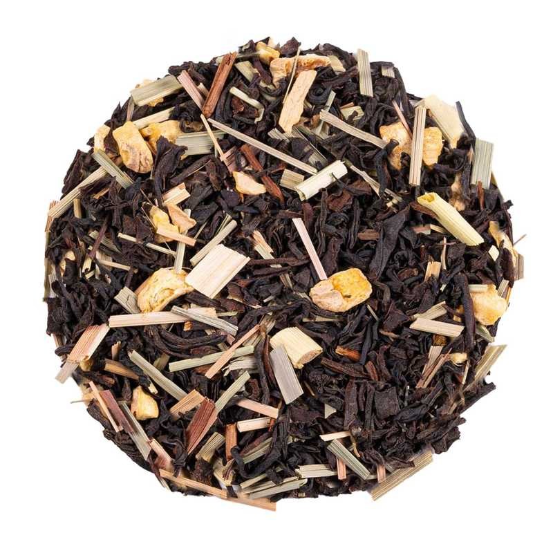 Thé noir Assam*, Inde du Sud*, gingembre* (12%), citronnelle*, arôme naturel, écorces de citron* (3%).